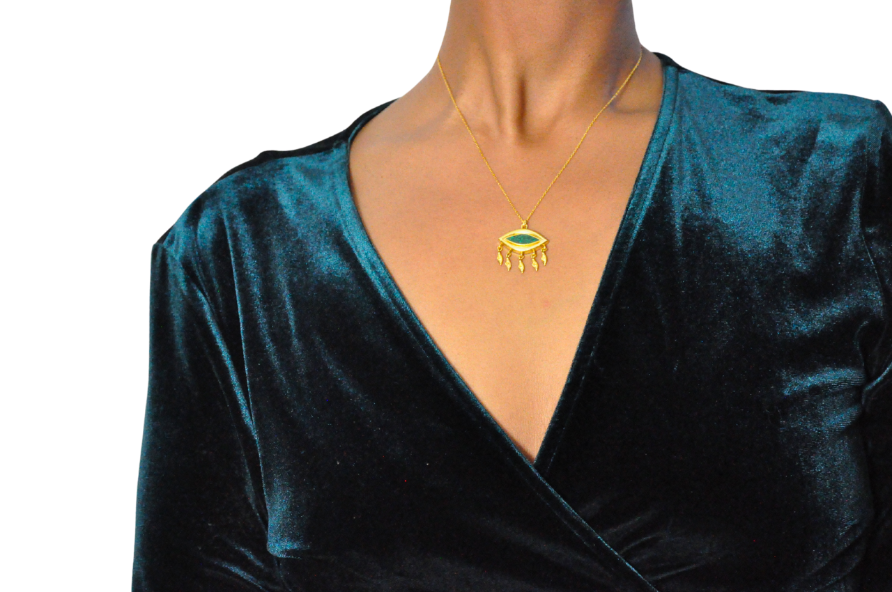 A symbol of clarity, wisdom, and celestial vision, the Aynara Necklace is named for its luminous gaze upon the world. Its gold-plated silver surface gleams like the reflection of light on water, evoking the depth and mystery of an all-seeing eye. A talisman of intuition and inner radiance, Aynara is made for those who see beyond the ordinary and embrace their inner power.