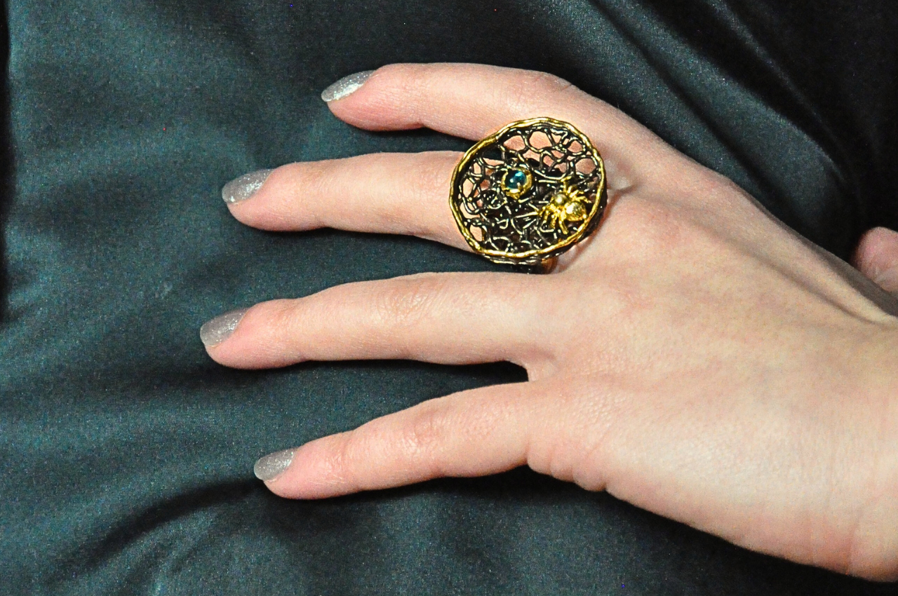 Mysterious, enchanting, and woven with celestial allure, the Noctella Ring is a tribute to the Goddess of the Night Web. Handcrafted in the heart of the Grand Bazaar, this gold-plated masterpiece over pure silver captures the delicate intricacy of a spider’s web, shimmering under moonlight. Designed for those drawn to the beauty of the unseen, Noctella is a symbol of mystery, elegance, and quiet strength. Wear it as a reminder that even in darkness, there is artistry, power, and light.